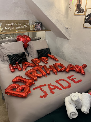 Une superbe expérience à vivre avec sa moitié . Le lieu est juste magnifique , décoré avec gôut . Un vrai moment d’évasion qui permet d’être comme dans un cocon romantique . Nous avons pu nous détendre dans le hammam qui est juste wouahou , ainsi que dans la balnéo et devant un bon film sur grand écran avec une ambiance comme au cinéma avec en option pleins de friandises à manger . Nous avons aussi dégusté de délicieux tapas délivrés par notre hôte en personne , nous nous sommes régalés . Nous avons pris l’option massage avec mon conjoint , un moment de détente grâce à la table de massage et les huiles parfumées . Julie notre hôte propose d’autres options un peu plus coquines , à tester aussi vraiment . nous avons passer une nuit magique mon conjoint et moi dans cet love room qui porte très bien son nom . Nous reviendrons y passer une...