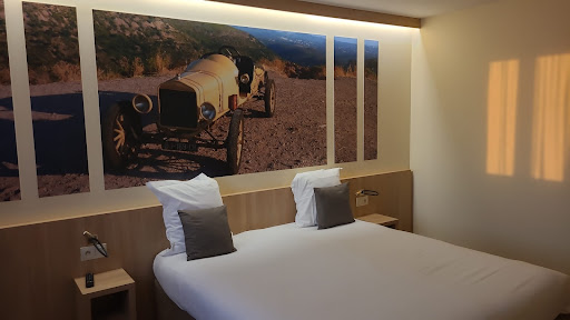 The hotel is very easy to find and there is lots of parking, especially around the back. The staff are very friendly and speak excellent English. The hotel is styled in the fashion of a museum of classic auto-routes and this gives it some charm.