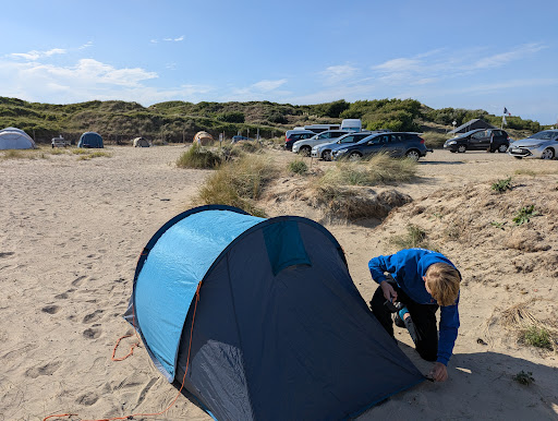 I felt compelled to write this after reading the, mainly French I think, reviews of this campsite. We stayed here last summer the night before catching the Eurostar home after three weeks touring France in our campervan. We hadn't booked ahead, so it was a question of just turning up and asking for a pitch. We couldn't get internet connection on our phones so couldn't read any reviews beforehand, although we did check out what others had thought after we returned home. If we get the good points out of the way first. The site could not be better situated. It is just the other side of the dunes, seconds walk away from an amazing beach, about twenty minutes drive from Le Touquet. The shower cubicles are plentiful and some of the most spacious we encountered in France. That is really it! ||The showers are in one central block which is closed at ten o'clock every night, possibly to keep out the gangs of roving teenagers who seem to prowl around after nightfall. If you need to use the toilet, there are about half a dozen external loos with no hand washing facilities except for the stand pipes around the site which provide drinking water. The site itself resembles little more than a car park on a bit of scrubland. The pitches are not demarcated at all and are packed in together. The other campers all seemed to have obligatory wailing children or howling dogs or, in some cases, both. We returned from a meal in the centre to find loud music pumping out of various tents and the aforementioned teenagers grouped together around the closed shower block! Luckily just after we returned the rain started and the music stopped - possibly one as the result of the other, we'll never know. To add insult to injury, this site was not even especially cheap. I did read another review which suggested that it was unsafe to stay at this site. I must admit we thought this was going too far. But we won't...
