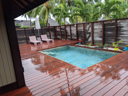 Read moreWe LOVED our sweet King Deluxe Garden Bungalow w/private plunge pool! It was tucked away at the edge of the beautifully manicured property about 3 rows back from the beach. So peaceful and private. Just what we requested and hoped for. It was spacious and spotless with cold A/C and a ceiling fan over the bed. Yay! Do not underestimate the heat/humidity index throughout FP; it can be savage. Loved the souring palapa style ceilings with perfect mood lighting throughout. Our bed was comfortable with very nice crisp clean smelling linens. No pillow menu so you get what you get. Bath linens were nice, however we constantly had to chase down housekeeping for extra bath towels. They only give you two. This became tiresome during our week long stay. We reuse our towels at home but when we travel, we like to feel a bit pampered or at least have the option. The bathroom was open concept and large with a peek-a-boo window to the main bedroom/living space. Big, deep, comfy claw-foot bathtub with separate shower. It was difficult to keep water from the shower off the floor due to the open concept nature. The bathroom floors are highly polished marble so can be quite slippery. The WC is translucent glass so you can see the silhouette of the person using it. There were dual sinks and plenty of counter space. Wifi and overall connectivity was good. Water pressure was good. There was only one luggage rack so we had to be creative about luggage access and storage. The sofa/chair cushions have seen better days and should be replaced. We appreciated the complimentary offerings in the mini bar that were replenished daily if you consumed them. Ice machines available throughout the property. ||We enjoyed our private plunge pool and used it daily. It was nice under the moonlit sky or when we needed to cool down. The outdoor space was a bit of a disappointment as the wooden decking was in need of renovation/replacement. A few of the planks were no longer secured which was a trip hazard. Many were rotted and we had to be mindful of splinters, nails and screws. Some of the siding on the side of the bungalow was also rotted and looked black. Mold? The chaise lounges were plastic and cheap. We understand the island environment is harsh on structure and must be difficult to maintain. However, at this price point it was a surprise and a bit of a disappointment.||Moorea is a stunning destination. The landscape and the color and clarity of the lagoon was astonishing. So lush and majestic. The large pool showcased the surroundings well. As did the OWB’s. The beach is small and faces the OWB’s. We never had a problem finding chaise lounges in the shade. Excellent beach service. Kayak’s, paddle boards and snorkel equipment available to guests. Beach towels were painfully controlled (you’re allowed one pp) and they are often thread bare. You can float in the lagoon forever. Just beautiful. It’s shallow. So many fishes. The OWB’s were super cool but we saved our OWB experience for Bora Bora. Most OWB’s at this property do not offer much privacy unless you are out on the very ends of the pontoons.||We had a meal package included in our rate so we received breakfast and a three-course dinner daily. There are three restaurants and none have A/C which can be uncomfortable when there is no breeze. The food was good not great. After seven nights the menu’s became redundant. It’s very expensive. Had we paid each day I’m sure it would have added up to $300+ for the both of us. Glad we had the meal plan. The resort is rather isolated so expect a $20 - $30 taxi to other restaurants or markets. They offer nightly Happy Hour (½ off cocktails) in a lovely setting during sunset which are pretty epic. ||We purchased a day-pass at the Sofitel. It was well worth it. Beautiful property and a beautiful day. If you want a wonderful private tour of the island, consider “The Lady in Blue” and book with her directly. She was delightful; we had the best day and learned so much about the history and culture of this beautiful place. Every staff member we encountered at the Hilton were friendly, helpful and welcoming. ||It’s often the little things that can make or break a hotel. I would love to give 5 stars but just can’t get there. Even with the handful of complaints noted in this review, we loved our time at the Hilton Moorea Resort & Spa and would return in a...