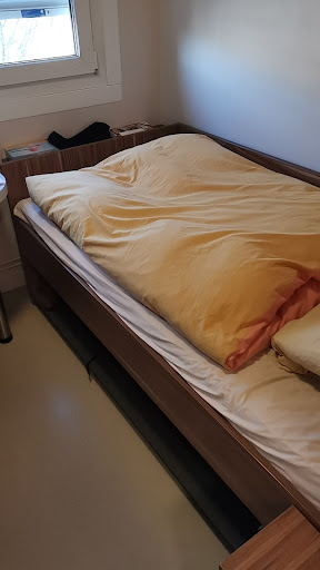 La chambre : Très propre, aucun soucis d'humidité, on peut voir que cela a été rénové récemment. Beaucoup de rangements (des étagères au-dessus du lit et du bureau, un grand meuble pour la vaisselle et la nourriture, un petit placard pour les habits). Facile à entretenir et nettoyer.