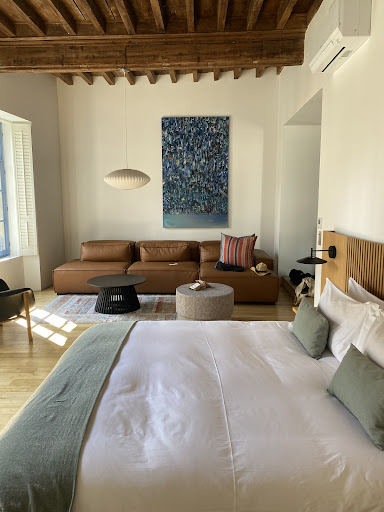 This enchanting property in one of the truly antique, charming medieval villages in S France is absolutely next level for luxury, comfort, style, and contemporary chic. Cutting edge Danish, Spanish design and artworks of the highest aesthetic is matched with gorgeous Vipp kitchens in some of the suites. The house embraces a stunning culinary studio and lounging spaces on the ground floor- a truly impressive reimagination of a dilapidated original bakery. It is a haven of tranquility hosted | managed by a young Portuguese couple, Bernardo and Mariana for whom no request is too much trouble and who bring a warm and welcoming spirit of true hospitality and service to this gem of a house with six sumptuous rooms. Fantastic value for money with a generous breakfast included (home made jams and sweet treats, olives and wine in your room fridge, an honour bar for aperitifs.....) I cannot wait to return with my gastronomic group next year to stay four days exploring this enticing region. Gratitude and appreciation for such a memorable stay. Marieke's...