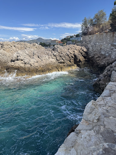Read moreNot exactly a lounging beach, but a rocky outcropping with some pebbly patches of beach lapped by the tide. There are some smoothed rocks to lay a towel on, but they can get crowded. Nonetheless, the water is divine, gentle and crystal clear. You can jump from the rocks, dive under with the fish or swim out and marvel at the Nice coastline from off shore. The outdoor shower was a nice surprise to...