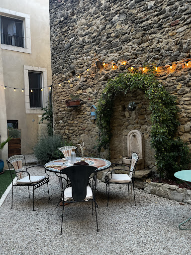Read moreSitué dans une maison de village à deux pas de l'autoroute A7, cet endroit mérite le détour. L'endroit, en face du château de Rochegude, y est très calme, les chambres sont décorées avec beaucoup de goût, la literie y est excellente et la propreté irréprochable. L'hôtesse Aurore vous fera partager sa passion communicative pour la bonne chère. Aussi, je vous recommande vivement de prendre votre diner sur place car Aurore vous préparera un repas avec une cuisine du terroir digne d'un restaurant gastronomique. Ne pas hésiter pas à déguster un vin de la région que vous pouvez choisir dans sa cave à vin. Pour le petit déjeuner, le pain au levain fait maison fait sensation pour apprécier les confitures maison. Il est également possible (moyennant un petit supplément) de déguster fromages et charcuteries de la région. Une cour intérieure vous invitera à prolonger ce petit déjeuner jusqu'à des...