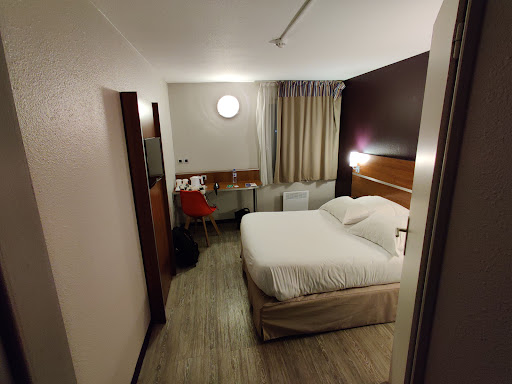 Read moreI was here for 3 days on my work trip. Since the job was in this part of France I didn't had too much choice. The location and parking of hotel are great. You are next to the main road (it is a bit noisy in the night but not too bad). The staff is really nice, professional and speaks good English. Rooms are nothing to write about but not bad. Bathrooms are a bit dated but clean with enough towels that are changed daily with no problems. Overall the hotel shows it's age and if you need elevator there is none. The biggest problem for most will be (especially in cold months) that the room heater is small and have to be tinkered with, so that it will properly heat the room. For me is not that big of a deal but for those that are cold fast it will be. Breakfast is diverse enough for few days. You have some eggs with bacon, pancakes, fruits, salami, cheeses, jams, croissants, müssle, toast, bread, yogurt and juice. I was only once on the dinner so I can't really speak about it but it was not that good. The stake and potatoes were both cold and the price...