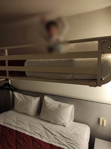Read moreHabituée de cette chaîne d'hôtel depuis environ 20 ans, je dépose pour la 1ère fois un avis tant mon mécontentement est grand. On le sait, c'est du low-cost donc il faut généralement s'attendre à un ou deux couac et parfois même ne pas passer une très bonne nuit tant les cloisons sont fines. Pourtant le rapport qualité prix est correct d'habitude. Paiement par internet à 37 euros la nuit pour 4 nuits, non modifiable, non remboursable, quelle erreur! Il y a tant à dire que je vais juste faire un listing: Volets cassés, reste en position fermé. la clim bruyante fait du chaud même en réglant au plus bas, résultat on étouffe! couverture datant du lancement de ce type d'hôtel (1990 environ), couvre lit troué par une cigarette, serviettes tâchées. meubles abîmés, distributeur de savon à la limite de se décrocher du mur et prise électrique fendue (une seule pour une chambre de 3 personnes!) qui n'inspire pas confiance. ménage déplorable, poussières non faites et poil de rasage du client précédent sur tout le pourtour du lavabo. Nous avons fait une réclamation, là dessus, l’hôtesse d'accueil s'est excusée et nous a expliqué qu'ils avaient une réduction de personnel actuellement. Ceci explique cela mais n'excuse en rien. Les poils n'ont pas bougé de là durant notre séjour (4 nuits)! Une honte !!!! Chambre plus minuscule que d'habitude, le petit déjeuné se prend dans une salle ou il n'y a que des tabourets pour s'assoir, en 20 ans c'est la 1ère fois que je vois ça. Comble de malchance, cet hôtel, comme d'autre, a la porte des chambres qui donne sur l'extérieur et nous étions pile devant l'escalier donc va et vient bruyant quasi incessant toute la nuit. Borne automatique extérieure pour réserver, payer 1 chambre ou recharger une carte qui s'est démagnétisée, plante ou ne fonctionne pas. Et petit détail pas important en soit mais qui a clos notre séjour, au moment de partir, un agent d'entretien toque à la porte pour savoir s'il n'y a personne et si elle peut faire le ménage, on ouvre et là on se fait reprocher de ne pas avoir mis le petit écriteau sur la poignée de porte disant "ne pas déranger", sauf que nous n'en avions pas dans cette chambre évidemment...
