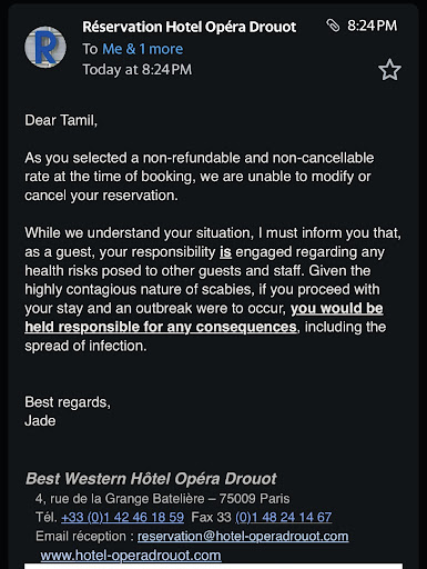 Read moreI stayed over a week in the room. The Pros - Comfortable linens, full sized bed, four pillows, close proximity to a good bakery and many restaurants including the famous Chartier (I suggest a dinner here if you stay at this hotel). There is also a tv, outlets for charging devices, and a desk with chair for working. My room had excellent curtains that blocked all light if you wanted, which helped my jet lag. The hotel is near many shops and In the Paris circle. I walked to the Louvre but it was a long walk. They offer a $12 euro simple breakfast at the hotel. It’s a bit over priced, but it was convenient one day. The staff were friendly and helpful.