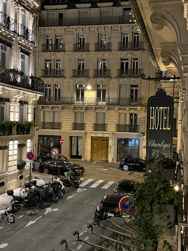 Read moreThis is a top notch hotel at a reasonable price. It's located just a few blocks from numerous underground stations and the Champs Elysee yet is on a quiet, calm street that feels hidden away. There are tons of walkable local bars, restaurants, shopping.||The rooms are gorgeous! A nice size, beautifully decorated in a classic style, and feature a very comfortable bed. There's a nice sized desk for working. And the large window where we were looked into a cute courtyard. There is a fridge (though it's not terribly cold) to store wine and cheese, and it is stocked as a minibar with reasonable wine prices if you're in late night crisis. The bathroom was huge, and we had requested what they said was the only one with a standing shower instead of bath and handle-shower. I just wish the shower area was enclosed as the bathroom gets soaked (very European for some reason!)||The breakfast downstairs is buffet and has a bit of everything including amazing local pastries and made on site eggs that were delicious! It's a decent price for what is included.||Last but not least - the staff are fantastic!! Friendly, but professional. Willing to avoid my terrible French and speak English. They greeted us by name and took care of any requests we had. ||This was a lovely, old school hotel that I would happily stay at...