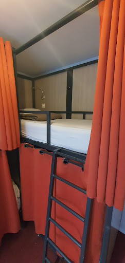 Time for the room! The bed was rather okay and surprisingly thick for a hostel. I have had much worse. The pillow was also rather okay. The bed was rather small for somebody who is 185cm. The bed is incredibly installed and very secure against the roof. There is no movement when entering the bed. Solid curtains for privacy.