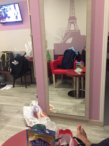 There is a Breakfast place in the Hotel with some slices of meat, cheeses, canned fruits, toast, bread, juice and different buns including croissants. No eggs, no bacon, etc.