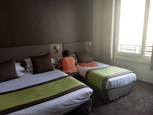 I would highly recommend this hotel to anyone not super new to Paris. It was a little difficult for me unfortunately bc it was my first time. It's relatively easy to metro everywhere, but bc of location, it was very hard to get your footing and figure out where and how to go places. I always felt safe, but hated rransfering from 4 line and taking the metro 6 line into Paris to Eiffel tower.... Very sketchy!!! If you know your way around and what you want to do then this hotel is a steal! Small rooms and the shower got water everywhere in the bathroom, but was able to wipe it up... Staff was amazing and very helpful... They could all speak relatively good English and were very willing to help figure out anything you neexed. The cleaning staff did a fabulous job and the breakfast crew was very efficient, clean, and good. I would recommend doing breakfast just out of convenience...We probably should have used the staff more often to help us find our way around and plan our trip. Safe area, most of the restaurants in this are have one or two people that can speak English and help you... We went to an Indian restaurant and though they spoke little English they were super helpful! Ask at the front desk for this recommendation it was only like a block from the hotel. The cafe across the street on the corner was not my favorite, so I would wonder to find a different one if you want to eat in the area which we did often to avoid the metro at night. We are use to washington DC, so with being in an unfamiliar area we always feel unsafe at night, though by looking at all the people out late, it didn't seem to be as dangerous on the metro as we had thought... But always cautious... Next time in Paris we may be a little more...