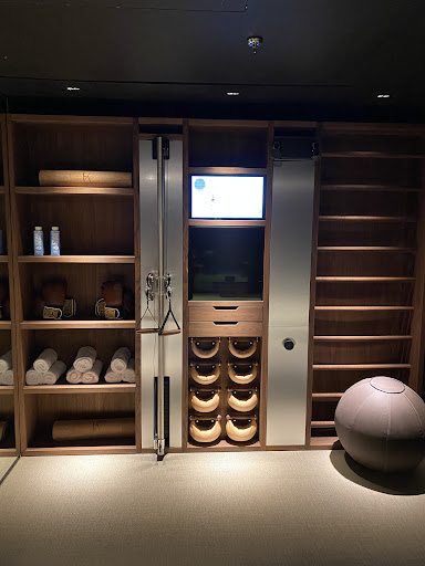 Amenities. The Hotel has a rooftop bar, but it was cold/rainy in early April so we did not get a chance to enjoy dinner/drinks on the roof. The rooftop does have a fantastic view of the Eiffel Tower and we did go up to see the Eiffel Tower light up (every night on the hour). The Hotel has a beautiful fitness room and sauna. The sauna is by reservation. I'm including pictures of the fitness room in my review because it's beautiful and I didn't see pictures elsewhere.