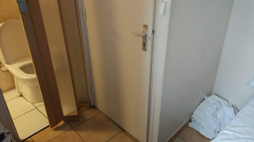 Before I morph into a Negative Nancy let me get the positives out of the way; the only good things about this hotel are the convenient location and English speaking staff.||||Now let's get down to business. Just outside the hotel and at any hour of the day you will be disappointed to discover a number of men who have spilt out from the neighbouring bar and onto the filthy street. Their favourite pastime being loitering by the hotel entrance, glaring into peoples' eyes with hostility, smoking and oogling females. Being two girls in our early twenties visiting a foreign country with no French, we were NOT impressed and were in fact intimidated by them. We could not understand their slurs or comments. That being said, there were one or two men working there who had some respect, it seemed to only be the cavemen frequenting the establishment who lacked it. ||||The interior of the hotel is a joke. Sadly, this joke is far from funny. I took the liberty of filming the ascent to our room and seeing as I can't upload videos, I have uploaded screenshots from said video for your viewing pleasure. You're welcome. There is no lobby, only a staircase. Yes, that also means there is no lift for lazy people like me and my ilk. I'll make it clear, you literally open the hotel door (whilst praying that none of the loitering scallywags follow you in), get onto the stairs so you can shut the door behind you and walk up the first set of steps to find the (very nice and friendly) receptionist seated in a cupboard. Yes, a cupboard. After checking in you can then continue up even more tight and winding stairs (as the lights turn themselves off halfway up) to find your room. If you have huge suitcases this is not a simple task. There is no room to manoeuvre.||||I know many Brits complain about restrictive health and safety procedures but once you stay one night in this hotel you will be thankful for the regulations back home. To be blunt, there is no fire escape unless you count your window. Good luck and have fun.||||The hotel is NOT staffed 24hrs a day and you are truly left to your own devices from about 4/5pm-10am. I've never heard of a hotel without staff and even when the receptionist is in, you won't be heard if you need help from the 5th floor. If there's an emergency or you need to complain about your noisy neighbours fighting, slamming the toilet seat down and essentially robbing you of your sleep like they did us, you are on your own. As you should have gathered, the walls are paper thin. There was even a man upstairs stamping around his room in the early hours of the morning; perhaps he thought he was an elephant. As he stomped from one end of the room to another, our light fitting rattled uncontrollably which was frightening; we were terrified he would come through the ceiling and crush us!||||The road outside the hotel is loud even through to the early hours. Our room was hot but we couldn't open the window lest we let in even more noise from cars and mopeds. Furthermore, how could I ignore the men from the bar next door sitting in the street having a nice loud chinwag at 2am? "A chinwag audible from the 5th floor", you ask? Yes, believe it.||||A combination of reasons led us to request a change of rooms. Our first room (14) had a leaking pipe in the bathroom with a bowl underneath it collecting water. We even managed to knock the bowl over and flood the bathroom floor. Mopping wasn't a simple task seeing as the towels provided are just big enough to shield you from your armpits to the very tops of your thighs. The sheets had their hairs on them. There were about three hairs of various lengths and differing degrees of curl. We had to turn the sheet over to sleep on (what we had to convince ourselves was) the "clean side" and escape the pubes. It is clear the sheets do not get changed here, they only make the bed when they come to "clean the room". Even in our second room (11) there was a mark on the sheets which remained over a period of two days - even after the room had been "cleaned" and the bed had been made. Nice psychological tricks to make you think some cleaning has actually been done!||||We were not amused by the bathrooms in this hotel either. They are actually miniscule. I had to sit sideways on the toilet when the shutter was pulled over. The shutter did not slide smoothly (it didn't even shut at all in 14), they rattle (so if you need to pee while another is sleeping, don't make the mistake of thinking you need privacy or they'll wake!). ||||Another factor that made is request a room change was the shower. 14's was laced with mould and the door lets water out onto the floor. The shower attachment is a bloody shambles. The pressure is terrible and it produces a dribble. There was also a random stream of water coming out of the side of the head!||||The TV in 14 had obviously commited suicide as a result of its depressing living conditions. It was so high up we could barely even reach the buttons to attempt to resuscitate it.||||Like a fool I brought some herbal tea sachets with me but don't make the mistake of thinking you'll be provided with cups or a kettle. I felt lucky to even had a hanger. A wire hanger, might I add.||||The sinks are so small I couldn't even wash my face properly. There is a shelf right above it and I attempted to wedge my head between the shelf and the sink to splash water on my face but it just wasn't happening. I genuinely resorted to washing my face out of the window with some bottled water. Lord knows who witnessed me do that but it had to be done. Room 14 was so nasty we even resorted to going a day without showering before we complained and got switched to room 11.||||Questionably, both rooms we stayed in had an awful, sour stench which was a cocktail of ungodly smell was cigarettes. Strangely enough, when the hotel room was "cleaned" the smell intensified. It was so cloying we had to air the room for hours.||||If only I hadn't been stupid enough to think prev