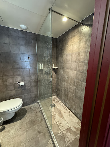 Even the electric outlets hadn’t been wiped down. The shower head was broken and you had to hold it in a perfect angle.