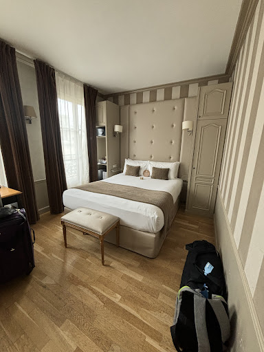 Read moreI had not stayed at this property before nor had I stayed in this specific part of the city. I knew the area on the other side of the Eiffel tower having stayed at a few hotels in the Ecole Militaire area previously. This hotel proved to be a hidden gem in my opinion. Excellent location to the Eiffel tower within reasonable walking distance and we had a tower view room which was delightful. It was room 50 (5th floor out of 6) and it was on the corner of the property. The view from our bed was well...memorable to say the least...and the bed was incredibly comfortable. We opened the windows and had a great view of the tower which was especially magnificent at night and when the lights flickered every hour...drinking wine and laying in bed staring at the eiffel tower what a dream!. The room itself was clean and elegant with all that was needed for our stay. The staff was friendly and the bar area was a nice touch. Proximity to the Metro station, cafes, the Trocodero, shops and Bakeries was also fantastic and really did cement this hotel for us as a return stop to use as a base camp when exploring this great city. One day we decided to walk to the Champs-Elysees for shopping and it was a very nice scenic walk through the city that was easily done in about 20mins or so. All in all great value and it exceeded our expectations. Would...
