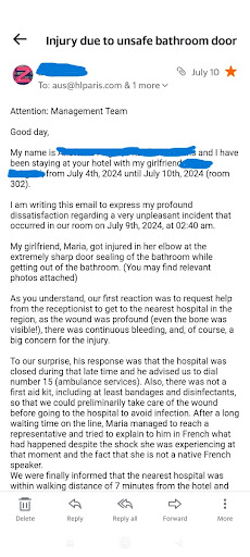 Read moreAfter my stay in room 302 of the hotel in question from 4 to 10 July 2024, just a few days before the start of the Olympic Games in the City of Lights, I would like a responsible professional to give an answer to my very obvious-yet unanswered questions-as a sign of the minimum respect towards me as a human being and as a client.