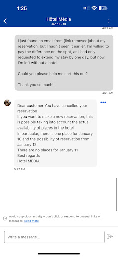 Read moreI booked and fully paid for my hotel stay through Booking for three nights. A few days before my arrival, I decided to add one more night. For some reason, the payment for the extra night didn’t go through, and the hotel automatically canceled my entire reservation, including the nights I had already paid for.