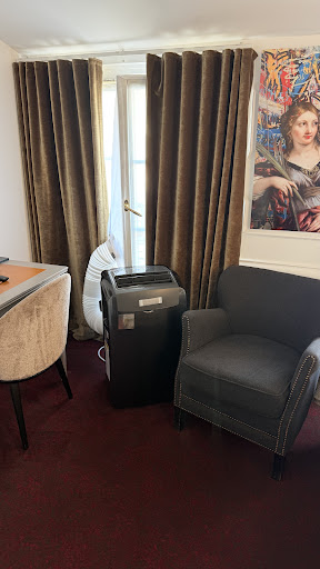 Read moreI’ve stayed in some questionable hotels, but the Hotel Moliere takes the crown. For 434 euros, I expected something more than a spare room under the extremely hot roof. Upon arrival, I was informed that the air conditioning was “insufficient” for the room, so they’d thoughtfully placed a mobile unit inside. Yes, a mobile unit, the kind that sounds like a jet engine taking off every time you switch it on. And of course it also means a hose sticking out of the window which in turn means you get woken up by the sounds of Paris waking up at 5:30am, if you could sleep at all. The reception staff were friendly but useless. As a fix for the terrible room situation they offered me ‘free’ breakfast (remember this is a 434€ room) and when the pipe detached from the air conditioning unit I was given a roll of double sided tape to fix it myself. I didn’t bother to mention the loose toilet seat as I would have probably been given a screwdriver.