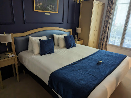 Right, let's get a few things straight. This is an AMAZING HOTEL. There are a few people on here buying the cheapest smallest neatest little room and then complaining about it. Paris has small rooms. Period. If you pay for a slightly larger room here, not only is it bigger but they are all meticulously clean. This hotel is exceptionally well run with staff around always to help or look after you, and the place is pretty and unique. The spa is STUNNING, primarily because often you have it all to yourself. How many of us can claim we have that experience usually?! The breakfast is pretty good, sometimes they ran out of eggs and beans early on and as a typical English rose, I missed out but it was easily made up by gluten free bread selections (pre heated for us by staff), fresh fruit, pastries, incredibly good cheeses (well chosen guys!) and meats, yummy set yoghurts and local cakes / breads... Good coffee, nothing to complain about!! Audrey on reception was a joy to behold, always with her beautiful beaming smile and a happy 'bon soir!' before leaving in the evenings - she was a wonderful host here at the hotel. We got knocked on the door maybe 3 times sometimes each time for different cleanings! This hotel likes to keep things ship shape! We invested in the blue terrace room and it was awesome. It was spacious and roomy. Netflix set up on the huge TV. Massive super king size bed. Great sheets and pillows, we slept great here and cool air con was whisper quiet. Perfection! We loved the tiny cute terrace for private coffees and relaxing together. Some rooms downstairs on ground floor level share an outdoor terrace in a private courtyard surrounded by plants with your own little table and chairs allocated which is adorable. Those rooms vary in size so ask if you're unsure. 🙂🙏 I loved everything about this hotel. My holiday was easy and the metro le Gobelins no.7 was easy to get to everything from. G7 taxis worked well here as well, so register when you arrive in Paris! Otherwise Uber taxis works too in some places. Enjoy yourselves and splash out, this place was a dream come true for us! Thankyou so so much everyone at villa...