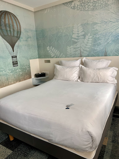 We stayed here for a few days in April for vacation in Paris. I have good things and I have bad things to say about this hotel. The good things include the front desk staff being very friendly and helpful. The bad things about our stay include: the elevator kept malfunctioning during our stay and we were on the fourth floor. Going up a narrow winding staircase four flights with all our luggage was not pleasant. The elevator was also so small that you can only fit one person and their luggage at a time. Also the location was near several restaurants which was good and bad in itself. Walking to stuff was convenient, however people stay out so late at night there and we could hear people outside our window at 2am and it kept us up. Being on the fourth floor we did have a very nice view, however the room was super small. We walked into the room and literally the whole room was filled up with the just the bed. That bathroom was also very small. I was traveling with my friend and it was very cramped for just two people. Would not recommend for a family. The room we booked was for two single beds, which ended up being kind of pushed together to end up making a sort of full sized bed. There was also not very good ventilation in the bathroom and when we used the shower it made the whole room very hot and humid. It was overall ok for the price we got for the room, and thankfully we did not really spend much time in the room because you could barely move around in there. The location of the hotel was out of the way from a main road too. If you want to get dropped off by Uber or taxi, they will have to drop you off a couple blocks from the hotel because the road in front of the hotel was closed. If I was ever to come back to Paris I would probably try to stay somewhere with a...