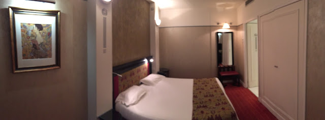 The room was clean, though dated. It was a bit sketchy that on our side of the hallway, the automatic light didn't come on right away so it was very dark! Overall, it's a good place for a bed and hot shower with a fantastic location to the Eifel Tower. We were concerned about bed bugs but the hotel wasn't listed on the bed bug registry and we checked for them but didn't see any signs. To be cautious, we kept our luggage in the bathroom and took showers before and after bed. We were going home after so we washed everything ASAP. So far, no concern!