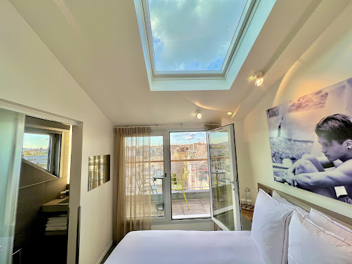 Read moreThe location is great! You're quite central and can easily access multiple interesting neighborhoods and nearby bakeries, museums and you name it, so that was great! I had a top-view room (Room 82). The balcony was small but quite beautiful. This room does not overlook the full city - just the top of nearby buildings. The design of the windows and the sun coming through was really beautiful. I enjoyed waking up and seeing the light change throughout the day. The beds were comfortable, and they kindly provided some water. The staff was accommodating and it was a very fast check-in / check-out process.
