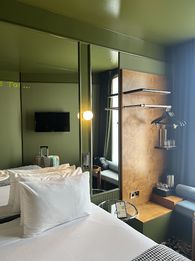 Плюсы: Персонал. Уже на этапе заселения нас встретили Maurine и Mahmudur с доброй, открытой улыбкой и искренней радостью. После длинной дороги мы, уставшие и вымотанные, были так приятно удивлены такой доброй встрече, нам казалось, что в этом отеле нас ждали всю жизнь 😄 За пару минут решили наш вопрос с транспортной картой, которая не имеет к ним никакого отношения. Спасибо! 🙏🏻 Уже в этот момент я поняла, что мы точно не прогадали с отелем. Чистота в номере, свежая «хрустящая» постель и полотенца. Такого приятного запаха и мягкости полотенец, как в этом отеле и такой безукоризненной чистоты я не встречала пожалуй нигде. Девушки которые отвечают за чистоту и текстиль - вы огромные молодцы! Отдельная благодарность. Дизайн отеля. Это выделяет отель по сравнению с другими и именно поэтому мы выбрали его, так как в этом ценовом сегменте я находила только стандартные номера без какого либо изысканного дизайна и без души, этот отель очень выделялся на их фоне. Чувствуется, что интерьером занимались профессионалы и вложили в него много сил, каждая деталь здесь продумана до мелочей и этот отель хочется рассматривать бесконечно, для нас как для туристов это был эстетический рай, благодаря которому отчасти сформировалось наше мнение в целом о Париже.