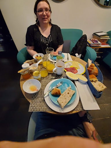 Read moreOur stay was so wonderful! The location felt more like a cozy b&b than a fancy hotel, which we loved. The staff are pleasant and friendly. The room was spacious and quiet. The decor was cute and inspired. The hair dryer was full-size and powerful. ||The daily breakfast service was a treat with orange juice, coffee, fresh fruits, yogurts, veggies, cheese, and a selection of pastries (baguette, croissant, and pain au chocolat). Also, the communal kitchen was delightful with tea offerings and filtered water.||My allergies had been bothering me our entire trip, except at Le 1er Etage Marais. The cleanliness and well-maintained facility definitely helped me breath better. The heating was perfect without drying out the room. ||Finally, the location was absolutely phenomenal. It's both a very close walk to a lot of amazing sights, restaurants, bars, and shopping and also very convenient to the metro. The neighborhood itself is a joy. ||Perhaps, the only nitpick would be the walk from the ground level of thel building housing the hotel to the hotel entrance is through a dank and dark narrow staircase.||Overall, we had a blast! Thank you Le 1er...