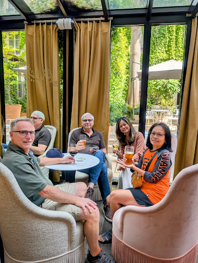 Read moreThis Hilton is a cute boutique hotel with a prime location, 10 min walk to the Arc De Triomphe and high end shopping, and a 35 min walk to the Eiffel Tower. We primarily used the metro to move around Paris, seeing the Latin Quarter, Notre Dame Cathedral, the Louvre, Grand Palais, the Pavilion, even the Eiffel Tower. Our walking was mainly surrounding the Eiffel Tower and getting to the metro stations. Now, regarding the hotel itself: from the outside and lobby - appearance is clean, charming and quite 'boutique' in decor. They have several small tables and heavy chairs around to serve as lounging and dining, and a small open patio area (there is no 'dining area'). The elevator is very, very small and cramped. We were advised to only take it 2 persons at a time, and when you get to your floor there are still narrow stairs to take to get to your room, abutted very close to other rooms on a very small hallway. The room itself was small, fitted a queen bed, and had 1 small round log table on one side that only fitted their tablet and a lamp with USB-A outlet. No room for my cell phone or tablet. Also, no outlet plug except in the very tiny bathroom! The shower - omg, the shower. Very tiny, like their elevator! And the enclosed shower door had a small open seam, water literally went through it and drenched the bathroom floor. I learned to used the hand held shower facing the wall so water wouldn't splash through it! I will say that the room was very clean, same with the bathroom. The pluses were the staff - Isabella at reception, Ronika at dining area, Johnnie at bar. Ronika, especially, was super friendly and personable with guests and very fast and thoughtful with service. Hospitality at it's best! Breakfast was excellent! Croissants and baguettes were delicious, as well as the quality cheeses (roquefort, camembert, goat) and meats served, including Lox!