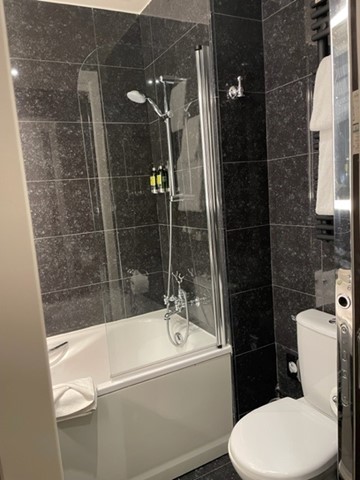 Being from the US, we had to get used to the smallness of everything! The lift was tiny, could hold only 2 people and 2 suitcases!! But got the job done. The room was clean, comfortable with a queen-size bed, nightstands, electric kettle for tea/coffee in the room, mini fridge that contained 6 bottles of complimentary water, small closet space & locker and functioning air conditioning. Our room was not a deluxe room, so it did not have a balcony overlooking anything scenic, but the big window opened up to a street view. The bathroom was very modern, black tile and stainless steel, and clean, with great shampoo/conditioner. The only thing is that the tub had a half glass 'door' which really didn't keep the shower water from splashing all over the bathroom. The Wi-Fi was strong, and we were able to use our phones, and tablets without difficulty. The only thing I could not understand is that the TV had all French programs. The only channel in English was BBC news that kept looping with the same news pretty much all day long. But then we weren't there to watch TV in the room all day, anyway!
