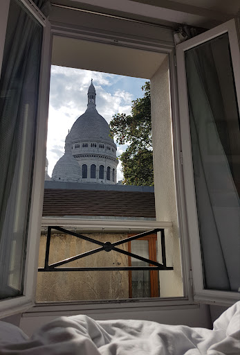 The rooms also looks nothing like the photos. Old, dirty, and much smaller than they appear, and there is a cemetery right outside the window. View of Sacré-Coeur obstructed by trees and not like the photos present.