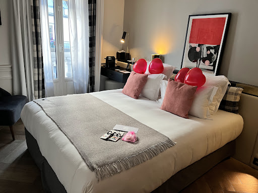 Read moreOur experience at this hotel was absolutely excellent! We were hesitant to book based on other reviews but decided to try this place out anyway. Do not believe the bad reviews! First, this hotel was clean and well put together. We loved the little cafe area in the lobby and the decor throughout. Second, the staff was so friendly and helpful! They made our stay truly memorable and comfortable. We have to mention Pierre who really went above and beyond for us. He made us coffee and croissants to go on the morning we left for the airport even though it was super early. Staff was TOP NOTCH. Third, we absolutely loved the amenities like free coffee/tea and snacks. It was so nice on a rainy day to come back to the hotel and have a hot drink with a piece of cake! Fourth, the area the hotel is located is very safe and within a 5 minute walk to the metro and Big Bus tour stop. There are many cafes and shops near by, including a grocery store at the end of the block where we were able to purchase water and snacks. Overall, we LOVED our stay here and did not want to leave! Perfect hotel in Paris. Also per other reviews, the rooms did have "do not disturb" signs in case you did not want anyone entering the room to clean and their safes were large enough to hold multiple items including sunglasses or a...