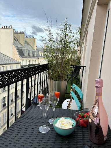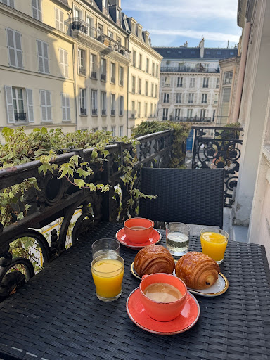 Read moreStayed with my friend for her birthday in a double room with balcony. The balcony was perfect and actually reasonably sized with tables and chairs to sit on. Room was a little small but honestly it was never an issue at all actually. The staff had left out some towel elephants and balloons with a note, how sweet! đ„ș All the staff we encountered were friendly, warm and had a super calming aura. Tea/coffee facilities in the room, a small fridge, flat screen TV with Netflix and you can also connect your phone to use Spotify etc. Bathroom had lots of towels, more than enough for two people, shower gel, soap little essentials and hair dryer. Double bed was so comfy and actually surprisingly big. There was a small wardrobe with hangers and safe. Air con unit to heat or cool down. USB chargers and sockets. Desk area, robes and they left champagne glasses we requested in room :) Hotel itself was beautifully decorated with a unique vibe- when we checked in the man at reception gave us a little tour and showed us a section in reception where they have free help yourself fruit, little cakes, coffee etc which was really cool. Amazing stay would definitely return! A few supermarkets or shops in the area, some cafes and restaurants close by, a REALLY good takeaway Pizza place close by and Italian restaurant over the road. Moulin Rouge super close by. Metro is not far, there is an information point inside to buy a metro day card and metro will take you to Eiffel Tower in roughly 18 minutes I think (don't quote me). Gare du Nord is not far from the hotel either, took us roughly about 20 minutes in an Uber ride with traffic.