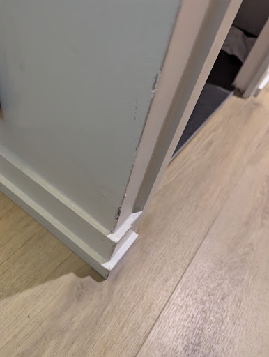 The paint had been painted over several times so the dings were just crappier and deeper. The towels were just the right side of being sandpaper and some where white, the rest a kind of light grey/yellow colour. Clean but really tired. The discolouration in the grout is pretty sad.