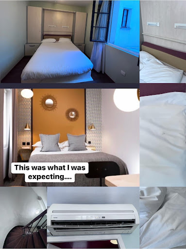 After breakfast, around 10am, we asked the receptionist to check on our AC and he said he could not do anything until the manger arrive. He was cold and acted like we were bothering him. We requested to speak to the manger on the phone and he said he was not allowed to give us the manager’s number according to the law. We asked about the arrival time of the manager and he said he didn’t know, but we could continue to sit and wait (see how they kept on making us wait!!??) We also asked if they would 100% guaranteed that we would be reassigned a room if the AC was still not fixed, but he just kept on telling us to wait for the manager to arrive. (Did he realize HOW expensive it is to travel to Paris and our time is super costly???) Since we had no idea when the manager was coming or if our room situation would be improved, we felt ignored and disappointed that we didn’t want to waste anymore time at this place and left before noon.
