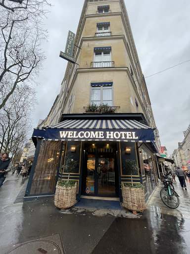 On visite Paris souvent (2-3 mois par année), et j’ai habité à paris (ma mère et ma grand-mère aussi avant que moi-même), alors on a resté à beaucoup des hôtels à paris. On a visité cet hôtel pour seulement un nuit après qu’un partenariat avec le Four Seasons George V et un autre hôtel pour plaisir (on fait les partenariats avec les hôtels, mais on arrive un ou deux jours avant que commencer où la même après, et reste dans les hôtels pour payer nous-mêmes qui sont mois chers; on a resté à villa saint Germain - très joli - et un autre hôtel près d’ici aussi cette visite). On a visité cet endroit quand il a été Mondrian (un resto), et on a vu welcome hôtel quand il a ouvré et l’entrée était charmant, alors on a pensé que les chambres ont rénové aussi. Ce n’est pas le cas, mais ce n’est pas la problème - les fenêtres sont très petits dans notre chambre, il n’y a pas une porte ou le rideau pour la douche, alors il y a de l’eau dans la salle de bains entièrement. Aussi, le chaleur ne marche pas dans notre chambre (à l’hiver), et on n'a pas dormi parce qu’il est très bruyante avec un placard pour l’équipe de ménagement a côté de nous (on a pensé quel qu’un a été dans notre chambre c’est assez bruyant), à 5h jusqu’à on a parti...