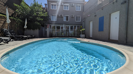 Our room was overlooking noisy street, however when window closed much of the noise was cut out, we loved the central location of this small hotel, amongst shops, restaurants and markets in the middle of Canet plage. Bus stop to Perpignan Gare and stops in the city is 5 mins walk away, bus route 6. No bar or restaurant, however, with a huge choice on the doorstep this is not a problem. Breakfast at €8.50 p.p. Is OK, but only cold continental fare, breakfast can also be had at the many nearby restaurants. The jewel in the crown for us is the heated outdoor pool, v. Small but spotlessly clean and great sunbeds surrounding. Canet plage is subject to high winds, blowing sand and sometimes difficult to stay on, but when winds occur the pool at the hotel is perfect, quiet, well cared for with shade, all you could ask for. Hair dryers are in the rooms, lovely spotless bed linen and towels. We did miss having tea making facilities, but this is a small gripe. Please note that there is no lift, if flights of stairs are a problem, please request lower floor and room overlooking pool is quieter. Front desk is not always manned, but the people running the hotel are friendly and helpful and the reasonable price for the...
