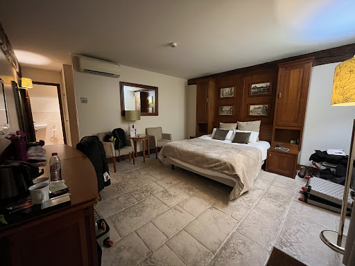 5/5 Excellent|Lovely hotel, with all the quirky charm of an old establishment, but including modern cons. ||Spent 1 night on route to CDG airport from Nice. Guest room 224 was perfect. Up 2 flights of stairs (no lift in this part of the hotel) in a quiet corner, spacious with comfortable king bed and high-end bedding, a window with nice view of some old town buildings, two skylights and a nice sitting area, Original A-frame rafters (so high ceiling) and a pristine, spacious bathroom. ||The bathtub with both faucet and handheld shower wand was superb – good water pressure, spacious bath for relaxing, and fluffy absorbent towels. No washcloths or face cloths, however. Half a point off for this. ||In room 224 there was a kettle with tea & instant coffee. 2 bottles of water were provided. The AC worked. The staff agreed to store small items in their refrigerator for us. It would’ve been convenient (and it seems a standard offering of virtually all hotels these days) to have a small fridge in the room. One does not want to run down to staff for every access to their items. The other half point was docked for this.||The reception and service from staff was exactly what one would hope for. Make sure you get a map of the area at reception – there are English as well as French versions and they are indispensable for navigating the small town and appreciating what you are seeing. ||Provins is an authentic, medieval village, nicer in our view, than Aigues Mortes or St-Paul de Vence, if you have been to either. You must view the Tour Cesar and large church behind it lit up at night. ||We...
