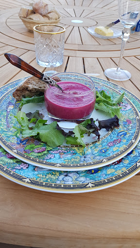 Un bon cadeau pour notre anniversaire et nous voici parti à une petite encablure de chez nous pour un véritable dépaysement. Après avoir traversé un long chemin en sous bois nous garons la voiture et découvrons une majestueuse demeure de style italo-second empire. Le jardin est magnifique, la météo est avec nous et nous découvrons une décoration théâtrale, baroque et terriblement chaleureuse. L’accueil est adorable, attentionné, on découvre la chambre duchesse au premier étage d’un escalier royal, avec des vitraux arts nouveaux, une moquette et des murs en velours rouge, des sofas, deux puits de lumières, des bibliothèques. C’est éclectique, chaleureux, artistique, original. La chambre est très spacieuse, une vue superbe sur l’extérieur, un grand lit très confortable, un beau canapé , une salle de bain très agréable, lumineuse, avec baignoire et douche. Le soir, nous mangeons à la table d’hôte avec les autres convives. Une impression de Downtown Abbey miniature. Le repas confectionné par Aly est simple, délicieux, raffiné. Avec des produits locaux, cuisinés maison, et de très bons vins, nous nous sommes régalés! Entrée, plat, fromages et dessert, tout était délicieux. Le petit déjeuner servi le lendemain est très agréable. Tout y est : viennoiseries, pain frais, yaourt, œufs, charcuterie, fromages…. Et la gentillesses d’Ally et la jeune femme qui travaillait avec elle. Une parenthèse enchantée qui donne envie d’y organiser son mariage ou de belles fêtes...