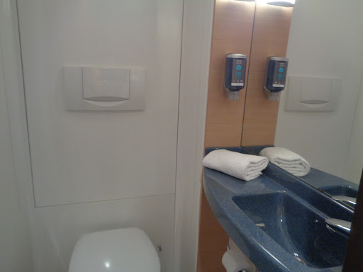 The hotel was clean and welcoming. Check in was simple and the person that helped us spoke English well and gave us the usual directions to our room and about breakfast the following morning. The room was light, bright and modern. There is a modular design which means you can pull screens around in the room to partician off the sleeping area from the sofa (where a child would sleep if using as a family room). Top tip - the screens are see through if one area is in the light and the other in the dark. They obviously don't do anything for keeping out sound either.