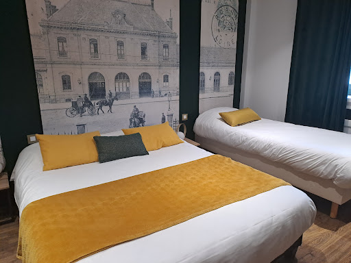 I stayed at this hotel for 2 nights due to it's proximity to the train station: directly across the street. Perfect location for travelers. Awesome customer service; attentive, personable, caring. The room is a nice size and is quiet with a flat screen tv, a blowdryer, and optional massages including Reiki available for purchase for under 60 euros for one full hour. The hotel is adjacent L'Astrée, a good restaurant according to Trip Advisor reviews and on average around 25+ euros on up.||The bathroom was renovated, but not taking functionality into consideration; the glass shower frame covers half the shower, so water gets everywhere. My shower water was lukewarm. When I left they asked how everything was, and I mentioned the water temperature just in case there was a problem for the next guest, and they seemed genuinely concerned and were going to check it out. The toilet was on the opposite side of the room, which is a little inconvenient. Neither the bed nor pillows were comfortable and the sheets were rough. Would I go back? YES. Good location and customer service outweigh any negatives for me. Bathroom amenities included body/bath shampoo, one small bar of soap, q-tips, shoe polish. Bath towel and mat were changed daily, amenities replaced if needed. Sufficient toilet paper. Mini fridge with 6 items you can purchase including water, soft drinks and a twix bar, 2-3 euros each. The rolling shutters are a bit of a challenge and the hotel staff had to do it for me. The rod folds up like a crank and you have to crank it open and closed. I never in a million years would have figured it out. Wifi is free but is 3rd party and includes having to view a commercial every time you reconnect and sign their agreement,...