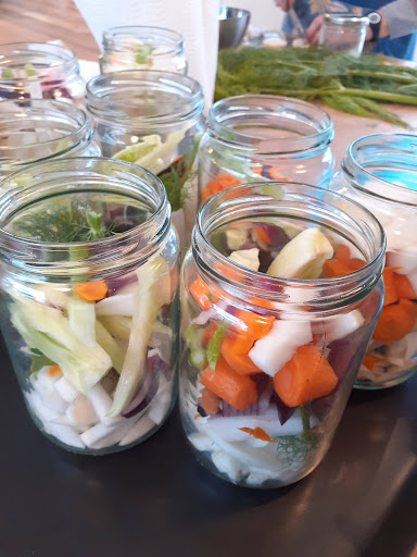 Read moreEntourés de Nina la pro de la conservation et de Julie la propriétaire des lieux aussi douée dans ce milieu, nous avons passé la journée à éplucher les différents modes de conserve (Huile, vinaigre, sucre, sel, traitements thermiques...). Le cours était très intéressant et bien expliqué. Nous avons pu déguster au petit déjeuner et au déjeuner des produits locaux et faits maison bien sur, par les autres groupes. En pleine campagne, dans une ferme magnifique et entourés d'artisans passionnés, le charme a opéré. Le rapport qualité prix est tout a fait intéressant puisqu'en plus des bons moments de partage, du savoir faire apporté, nous repartons tous avec une belle quantité de bocaux fabriqués par nos soins. Je recommande vivement de découvrir ces ateliers chez Julie et Guillaume!!...