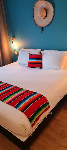 Read moreHôtel récent, près du fleuve, ce qui est agréable pour une balade à pieds après le dîner. Toute la déco est très jolie et originale sur le thème du Mexique. Accueil pro. Chambre propre ( 3005 ) et salle de bains pas très grandes ( comme un Ibis Style ) Au regard des normes trois étoiles, il paraît que c'est normal ( superficie, accueil ) Sortie de douche mal conçue : Si peu d'espace entre le bas de la porte de douche et le sol que le tapis de douche ne passe pas. Donc, ce n'est pas pratique et il y a de l'eau qui coule lorsqu'on sort. Prendre garde à bien respecter les horaires de dîner et de petit déjeuner. En effet, il y a plusieurs services. La distance entre l'hôtel et le Zoo Parc n'est certes pas très grande, mais, après avoir piétiné une journée, nous avons apprécié d'y être allés en voiture, sinon, les 4 km nous auraient été bien pénibles à parcourir. Buffet du soir copieux, et varié. On y trouve forcément de quoi se régaler. j'ai apprécié les crevettes roses, les bulots, le plateau de fromages bien affinés. Les plaques chauffantes ne sont en revanche pas assez chaudes, et les plats étaient tièdes. Heureusement, il y a un micro ondes, mais ceci pourrait être amélioré. Un élément nous a choqué : dans notre forfait demi pension, nous avions le droit à une bouteille d'eau chacun, et une boisson autre. J'ai pris une bière ( 50 cl ) et mon mari un diabolo menthe ( un tout petit verre, moitié rempli, deux gorgées et c'est réglé ) De favoriser la personne qui consomme quelque chose d'alcoolisé au détriment de l'autre non alcoolisé, c'est un peu anormal, non ? Il serait plus juste que chacun ait le même quantité de boisson, au minima. Le parking n'est pas juste devant l'hôtel mais tout proche, mais nous ne l'avons pas cherché longtemps. Au petit déjeuner, excellentes viennoiseries, thé et yaourts de qualité. il est évident que les produits locaux sont privilégiés. L'omelette est bizarre, elle a un drôle de gout, nous nous sommes demandés ce qu'il y avait dedans, et de surcroit tiède ( toujours ce souci de plaque pas assez chaude, un couvercle en plexi ne serait...