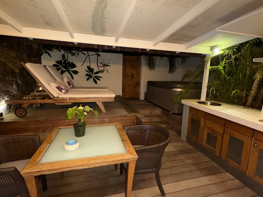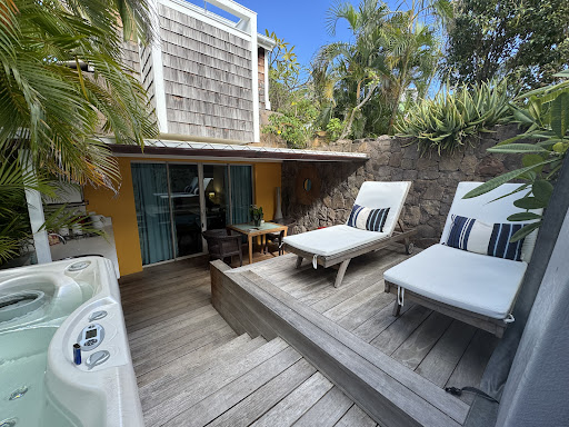 Read moreThis is a review of our stay in February 2017. I cannot find any information regarding the impact of the hurricane in September that hit the island. I only hope that the resort and the owners have come through unscathed because both are absolute gems.||||The hotel and grounds||Our first trip to St. Barths (10 days) has been excellent, in part because we stayed at Fleur de Lune, a hotel that is family owned and run that has 5 very unique suites/bungalows that are well appointed, and each has own pluses and minuses. Our bungalow, La Kaz (more about it below) is located close to the salon, where we have our daily breakfast and evening aperitif. The salon is very inviting and tastefully decorated with a distinctly Caribbean flair. Besides the dining room table where we have breakfast, and the living space with sofas and chairs enough to seat 6-8 where we have our evening drinks, there is a very small rectangular pool (the photos make it seem a lot larger than it actually is). I did not see anyone using it for the 10 days we were there so I think it’s more for show. The other accommodations wrap around the salon in a variety of configurations. We did not visit any of these but based on descriptions of other guests, they are all very unique. My recommendation is to book directly with Fleur de Lune rather than go through a booking agent because I could have gotten a better deal; if my French had been fluent, I could have asked Maryse for a better option than what we had.||||La Kaz||The website describes the suite very well and I will not elaborate on basic features here. Some things that I wish I knew beforehand was that the kitchen is located outdoors so it does not have A/C, and is also exposed to a lot of flies and mosquitoes later in the evening (just when you want to do some cooking). The sitting area is similarly exposed and lacks privacy because anyone walking to the office near our unit can see us. This was not obvious from the website. The shower is also outdoors, which is not really an issue, but I did have a few mosquitoes fly around me when I needed to shower after dark. This is something that really can’t be avoided because of the lush gardens and lagoons nearby. There are mosquitoes galore at the resort, and we had to make sure that the curtain separating the ensuite and the bedroom was closed tightly after around 4:30. We definitely made use of the mosquito netting over the bed each night. Someone had mentioned about the low water pressure in another review, and we experienced a bit of that, but can’t say it was a noteworthy problem. Because of the bugs and lack of A/C, I used the table/desk in the bedroom as our dining table the couple of nights we did not want to go out to eat. On those occasions, I was able to use the very stripped down kitchen to reheat leftovers, and even make some stir-fry dishes with veggies and meat purchased from the supermarket. I came prepared to cook a few meals and vacuum-sealed some specialty spices that really came in handy.||||We rented a car at the airport and had a hard time finding the resort just using Google Map and the address from the website. We stopped several times at homes near the resort to ask for directions and was surprised that no one knew of a resort called Fleur de Lune. Google map kept bringing us to the M&P restaurant, and after several trials, we continued up the road from the restaurant and eventually found the sign to the resort. It turns out the proprietors of the resort also owns the M&P restaurant. In retrospect, most guests probably take a taxi to Fleur de Lune from the airport, and would not encounter our problem. ||||Hospitality||Maryse and Stefan Berry, as well as a manager, Alejandro, collectively hosted us. Besides running the hotel, the Berry's also own other businesses, such as a taxi service, catamaran cruises, and the M & P restaurant (stands for Meat and Potatoes). It's not entirely clear which is their main business and which a hobby. We dealt mostly with Maryse; Stefan and/or Alejandro tended to the catamaran cruises and were off by 10:00 am or so most days. We went on a catamaran cruise with 6 other guests and it was very pleasant. If you’ve been on a cruise before, though, this is nothing out of the ordinary. The resort has a rich history—several generations of the Berrys have owned the property and the resort has expanded over the years, seemingly around this very large tree in the center. It is a very quiet retreat, but only about 10-15 minutes drive from the main part of town, where there all manner or ways to entertain oneself if you have the money. A word of advice about driving in St. Barths if you are not used to narrow roads and impatient islanders: get a very small car, and take the long way around hills. The most direct ways to our destinations usually involved several Z turns up steep hills.||||Dining||The island has more fine dining establishments per capita than I have ever seen in the Caribbean (or probably could be sustained by any other culture except the French). Around the resort itself, and within walking distance, there is the M&P restaurant, L’esprit (French cuisine) about 5 minute walk and the Grain de Sel (Continental) about 10 minute walk which is closest to the Grande Saline beach, which is another 5 minutes walk. About a 5-minute drive up the road in the opposite direction is yet another fine restaurant that we never got to (Le Tamarin) because we enjoyed the L’esprit so much and returned to it on our last night. They are pricey by Caribbean standards, but then again, St. Barths is actually part of France, and not the Caribbean. For lunch, we drove to several bakeries and markets to purchase croissants, baguettes, cheese and cold cuts that were all very reasonably priced. A great choice of wines at great prices. We ate at several restaurants in town and they were all very good.||||Bottom line||We chose Fleur de Lune for its proximity to the Anse de Grande Sal