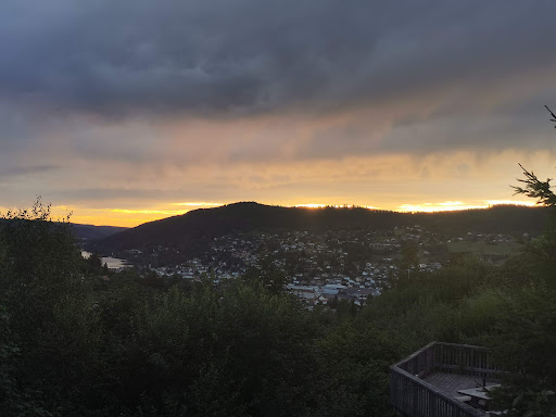 La vue est magnifique. C'est splendide. On respire ! Le lac est bien visible jusqu'au couché du soleil. On se sent bien isolé du monde alors qu'on peut voir que beaucoup de chalets ont poussé sur Gérardmer. Mais celui-ci est bien disposé : on a totalement l'impression d'être au milieu de la montagne, dans une douce tranquillité.