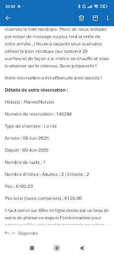 Cependant, nous avons remarqué quelques petits hics qui ont pu faire baisser la note. Tout d’abord, l’accès au domaine a été plutôt sportif. Sur le message envoyé par l’hôte, il était écrit que nous pourrions utiliser des rames si nous n’étions pas à l’aise avec le moteur électrique. Cependant, notre barque n’en possédait pas. Nous avons alors demandé de l’aide et avons été pris de haut de part notre ignorance sur comment l’allumer. On nous a également reprocher de ne pas avoir lu le message en entier pour comprendre comment il fonctionnait. Cependant, après relecture il n’y avait qu’un petit paragraphe expliquant qu’il fallait toujours enlever une causse du moteur pour éviter d’utiliser trop d’électricité rien de plus. Peut-être faudrait-il rajouter un paragraphe expliquant clairement comment l’allumer pour les non-électricien ? Ou utiliser un tuto sur YouTube comme avec les rames ? Attention également. Il s’agit d’un domaine où vit l’hôte. Nous pensions être totalement autonome et avons été surpris par cela. De plus, l’une des chambre...