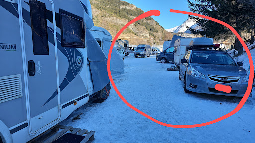 Read moreAbbiamo passato le nostre vacanze di Natale in questo campeggio, e non siamo rimasti contenti. Il campeggio è uno spiazzo vuoto, con piazzole delimitate, non grandi. Alle spalle ha un torrente, davanti ha una strada, per cui l'unica cosa che offre è l'accesso alle piste, e al paese di Lanslevillard. L'aspetto estetico del campeggio assomiglia al parcheggio di un supermercato. Le tariffe sono ostili nei confronti delle famiglie con figli: la piazzola e una coppia di adulti costano 21 euro, e ogni figlio ne aggiunge 12. Per cui due figli aggiungo 24 euro! Questo è assurdo: se le nostre figlie avessero campeggiato in un'altra piazzola, avremmo speso meno. Noi avevamo prenotato a metà dicembre, versando duecento euro di anticipo, e ci è stata assegnata una piazzola che però in inverno viene usata come scarico della neve. E quindi ci è stato detto di piazzarci nel vialetto di uscita del campeggio. Per tutta la vacanza abbiamo avuto le carovane di persone che uscendo e rientrando dal campeggio ci facevano il giro intorno, passando a una spanna dalle nostre finestre. Dovevamo stare attenti ad aprire la porta, perché rischiavamo di sbatterla in faccia a qualcuno. Un paio di giorni dopo il nostro arrivo, però, all'interno della piazzola che non avevamo potuto occupare, sono stati piazzati due camper. Per cui noi abbiamo pagato quasi 600 euro per campeggiare 10 giorni in un vialetto, mentre la piazzola che abbiamo pagato è stata occupata da due camper.