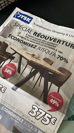 Le royaume l'incompétence ou pub mensongère ? Nous avons réservé une table et 8 chaises le vendredi 14 octobre pour les récupérer le 21 octobre pour profiter de la super remise. Les deux vendeuses qui connaissaient à moitié leur travail m'ont confirmé que la table et les chaises étaient bien en stock et qu'il suffirait de les retirer le mercredi d'après. Je me présente comme prévu le 21 octobre. Pas de problème, les chaises sont là, je prends même une rallonge pour la table... Je vais derrière le magasin pour retirer mes articles et c'est là que j'apprends que la table n'est pas en stock... Pourtant réservé. Alors je me demande ? Ils ont vendu ma table à un autre client ou c'est une pub mensongère pour faire venir le client ? Aucun délai de livraison pour la table n'est donné, même pas un effort pour récupérer la table dans un autre magasin (12 de dispos au magasin de St-Brieuc) aucune excuse pour le désagrément.. Jysk vous avez encore du boulot devant vous pour dépasser votre concurrent suédois !