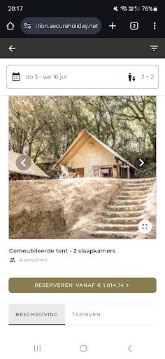 I booked a furbished tent, which on the website clearly stated included a private bathroom and kitchen. It did say the bathroom was located outside the tent, but it clearly was added as a private part of the tent. When we arrived, there was no bathroom and we were told you have to use the camping bathrooms. This is fake advertising, because when a tent clearly states "bathroom" on the inventory list, it means your own bathroom, not a shared one. We explained our issue with the receptionist, and she tried her best to help us by providing us with an other tent (which was way too big and also still dirty, but that was okay since there weren't any other ones available and we were just wanting to get what we booked, so including a bathroom). After unpacking, a screaming owner came to our tent, acting like we were asking for a free upgrade. I showed him the screenshots I made, which clearly stated there should be a bathroom, but he said the website was wrong and it's not his problem. We did book on their own website, not through another party. He never came with a solution (except asking us to pay 800€ extra for a dirty bungalow) and kept screaming, not only at us, but also at his receptionist (who was the only one trying to help). We soon understood that trying to come to a solution wasn't going to happen. The owners wife admitted that they were wrong, but still refused any solution. She told me she can't change the discription on the website, and it's all somebody elses fault. The next day, the website was magically changed. I included screenshots from our booking, and the day after the altercation.