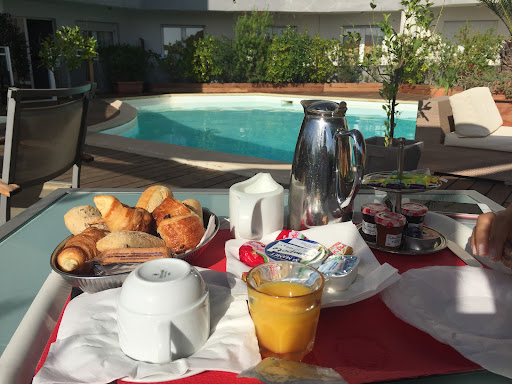 Why quirky? Most hotel rooms have painted or papered walls, but our room - and I suspect many others- had bare pink plaster (see photo). Maybe refurbishment was being undertaken and left unfinished. Most hotels have a breakfast option which contains an element of choice, but the Le Tilbury has strict portion control and you will find every ingredient on your breakfast tray which you are entitled to consume listed in the Information folder in your room. The breakfast trays contain mostly pre-packaged food, with only juice, breads and coffee or tea added when you sit down. But, the tray is brought to your table and refills of coffee and /or hot water for tea are available on request.||The hotel has many very good aspects : firstly, its location, with access to the citadel (old town) just up the hill to the right, the Tourist Info office a little further up the hill, and a bit beyond that, a mini-market shop. Don't expect too much of the Tourist Info staff : don't bother asking them about the Bastion,as they seemed unable to tell us some basic facts, such as that entry to it is free and there is a great 360 degree view of the town. ||Also, most rooms have a good sea view from a balcony, and most balconies get plenty of sunshine. There is a good pool, (towels available from the breakfast bar), good sun beds and sofa-style seating where bar snacks and drinks can be enjoyed. The staff, especially the charming Moroccan/French young lady called Boursha, are most welcoming, friendly and obliging. Telling us that British people were "so nice" may have coloured our impression of her, but we liked her even before that. Despite the plain walls and the plain - but adequate- breakfast, we were happy with the hotel and felt...